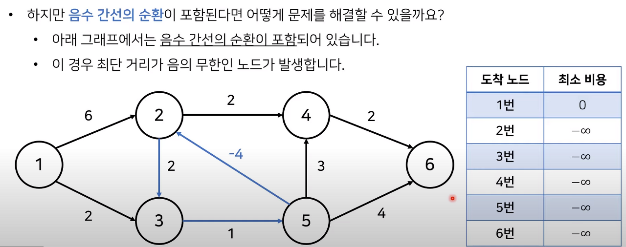 출발 노드를 설정한다. 최단 거리 테이블을 초기화한다. 다음의 과정을 (V(=정점) - 1)번 반복한다. 모든 간선 E개를 하나씩 확인한다. 각 간선을 거쳐 다른 노드로 가는 비용을 계산하여 최단 거리 테이블을 갱신한다. 시간 복잡도: 벨만-포드 알고리즘의 시간 복잡도는 O(V * E) 입니다. 여기서 V는 정점의 수, E는 간선의 수입니다 문제 : https://www.acmicpc.net/problem/11657 import java.util.*; class Edge { int from; int to; int weight; public Edge(int from, int to, int weight) { this.from = from; this.to = to; this.weight = weight; } ..